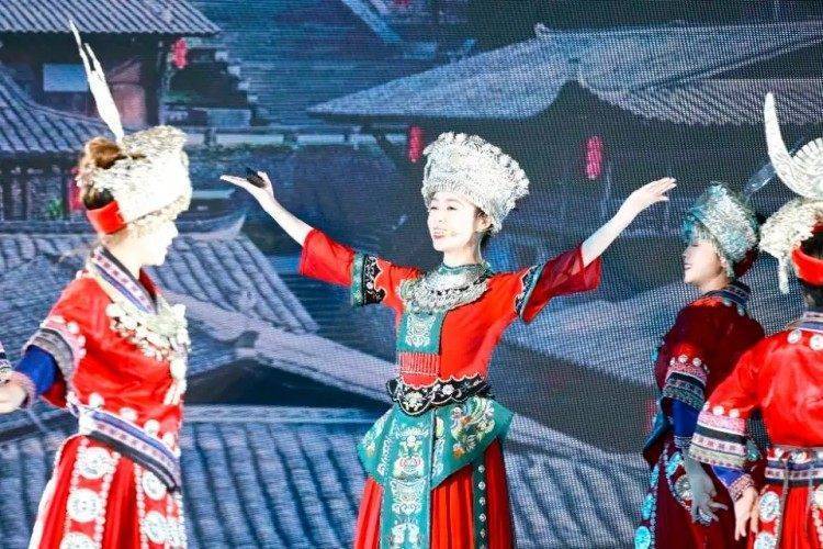 在推介环节中,各地文旅人才代表依次登台,生动讲述家乡的自然风光与文化故事。武隆以“世界自然遗产·天地大美武隆”展现从观光旅游向度假目的地的转型;石柱在“时空奇遇”中呈现秦良玉故里的历史与康养资源;彭水以“世界苗乡·养心彭水”发出热情邀约;酉阳通过非遗与情景表演勾勒“世外桃源”的意境;秀山以“书中边城,画里秀山”描绘水墨诗意的文旅图景;东道主黔江则通过“时空对话”的形式,展现从廪君传说至现代新城的多元文化融合。